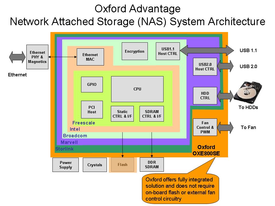 - CPU: Oxford OXE800DSE ARMv5 926 200MHz (Blockdiagramm)